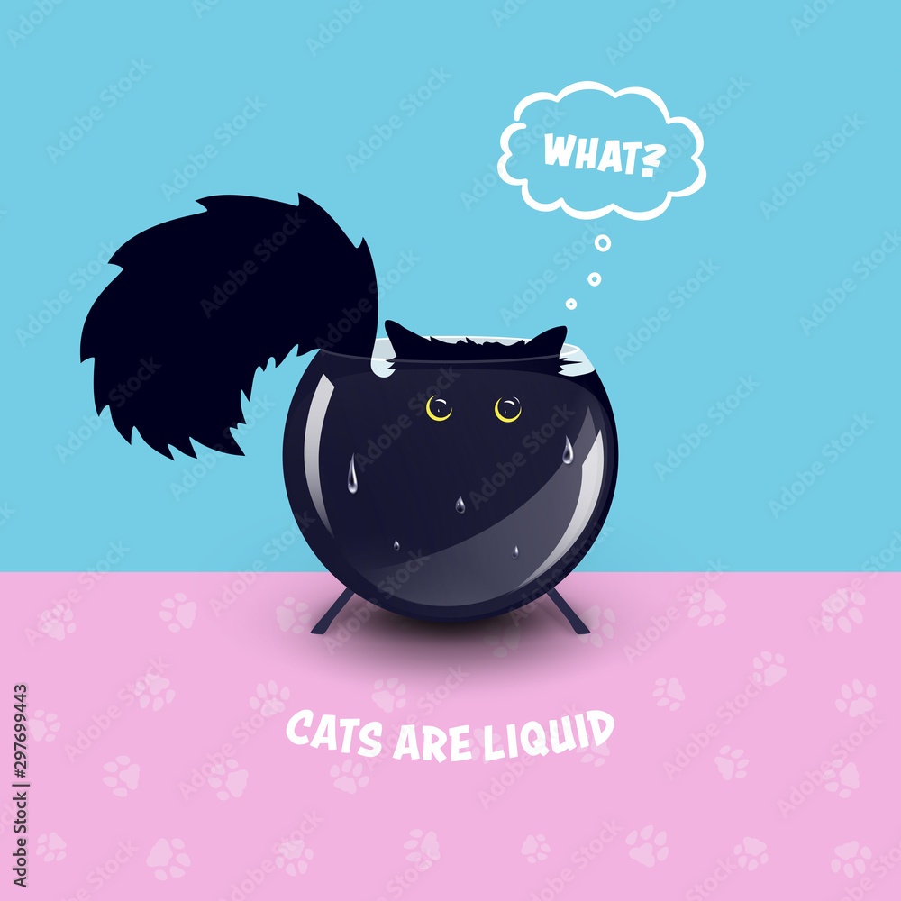 Black Cat With Golden Yellow Eyes And A Fluffy Tail On The Pink And Blue Pattern